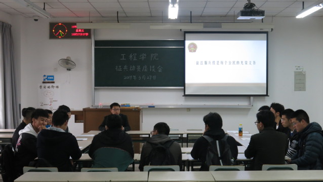 为响应贯彻落实全国大学生征兵会议工作精神,进一步加强征兵政策宣传,充分调动我院学生参军入伍的积极性、参与度,3月27日在2106教室举行2019年征兵动员座谈会。负责老师刘星安,退伍学生代表陈帅、肖常伟以及我院应征入伍报名学生参加了此次大会。