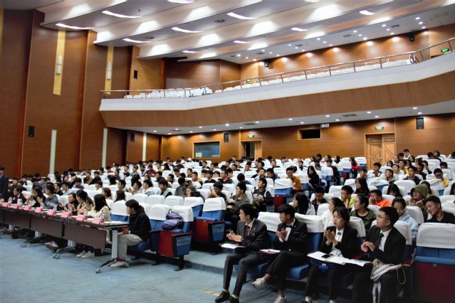 正式比赛打响前,四位评委率先上场为大家带来一场异彩纷呈的表演赛,铿锵有力的言辞、条理分明的思维过程、广博丰富的知识储备,向同学们展示了一位真正辩手的专业素养和实力所在,将现场气氛推向高潮,更将在场所有人员带入接下来的决赛的紧张氛围中。