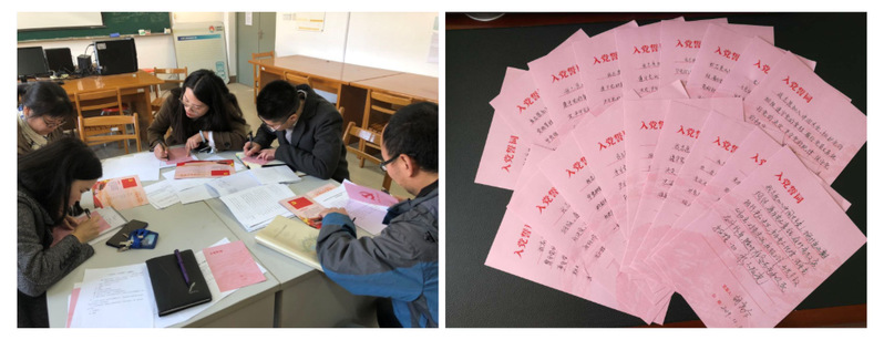 学院为每位教职工党员精心准备了一份专属“入党纪念卡”,它记录着入党时间、入党时党支部、党支部书记、入党介绍人等意见信息。当党员同志在“我的初心故事”分享会上收到这份入党纪念卡时,都感到惊喜而兴奋。机械专业教研室党支部王永鼎同志拿到入党纪念卡时说:“想想自己已经入党35年了,再一看到入党介绍人,入党时的情景历历在目。这学期‘不忘初心、牢记使命’主题教育学习很有必要、也有效果”。