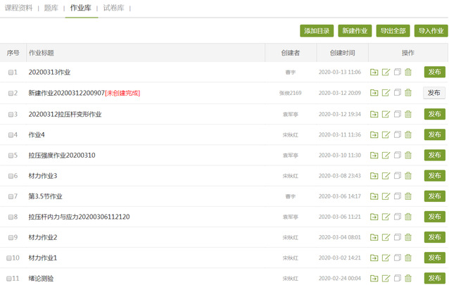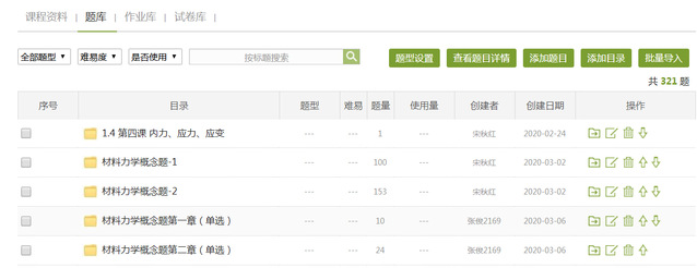 课程组选择了泛雅平台建立在线教学体系,按照课程的大纲制定教学任务清单并搭建课程的框架,根据学生的反馈情况进行了多次补充和完善,然后将各章节的录制视频上传到泛雅平台。另外,我们尽量丰富教学内容,上传课程学习过程中用到的各种资料,包括拓展阅读内容、国家精品课程、慕课等教学资源。在作业题和题库的建设过程中,我们对每章、每节的重要知识点都建立了相应的题库。这些测试题常都是通过系统进行自动评阅的,一般都设置成判断题和选择题,而不要设置成填空题,因为系统评阅时对字符敏感,容易造成误判。
