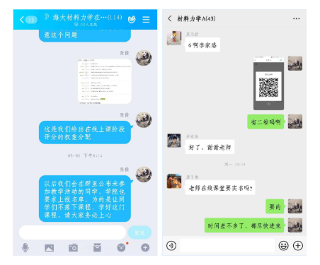 课后,我们一方面布置需要学生手写并上传的作业,另外,通过在泛雅平台发布话题提问、讨论、题库选择题等诸多方式帮助同学们理解学习内容,为了能够及时互动交流,我们建立了QQ总群、每位教师的授课微信群。