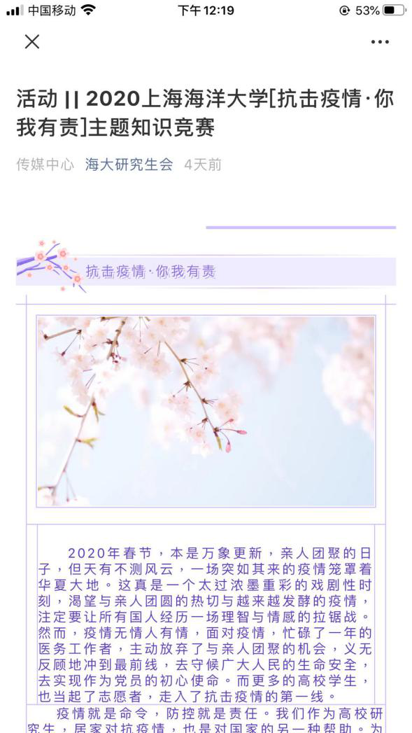 在学习心得交流结束后,支部同志一起协同开展“抗击疫情,你我有责”为主题的防疫知识竞赛答题,通过知识竞赛参与的方式,学习新冠肺炎防控知识,丰富自身理论知识,积极通过学习和实践发挥党员示范引领作用。
