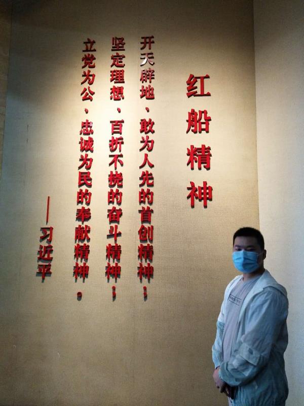 在浙江省红色景点,支部党员参观了南湖革命纪念馆,这是嘉兴南湖中共一大会址的宣传、保护、管理机构。新建成的纪念馆宏伟而不失典雅,门前白色雕塑上刻着“开天辟地大事变”,党徽高悬于正门中央。序厅中的浮雕,全铜制成的“一大”纪念船仿若从从历史画卷中奔涌而出,革命之船扬帆起航,势不可挡。中国共产党在国势风雨飘摇之际,以大无畏之勇气肩负起中华复兴的神圣使命,红船精神发人深省。无论行得多远,都不要忘记来时的路,中国共产党的初心和使命是为中华人民谋幸福、为中华民族谋复兴。