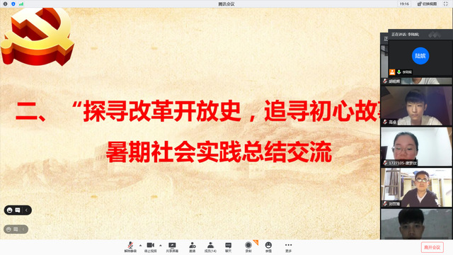 2020年9月8日,欧博集团官网电气学生党支部在腾讯会议举行“探寻改革开放史,追寻初心故事”暑期社会实践总结大会,此次线上会议旨在总结暑期社会实践经验、分享各项目组成员之间的心得感悟并交流实践成果。