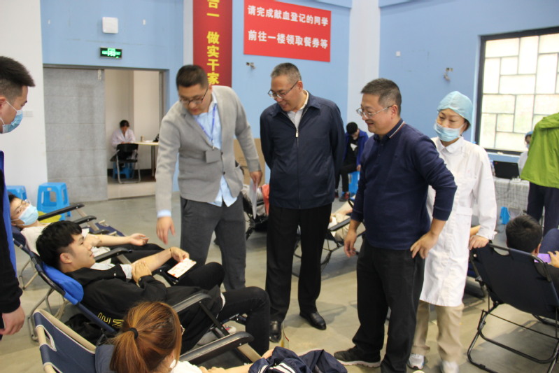 献血区,前来献血的同学们挽起袖管,躺在采血椅上,献出自己的血液,为将来需要血液的人提供他们的一份力量。下午13时30分欧博集团官网院长曹守启、院党委副书记郑宇钧、辅导员老师主翔宇来到现场,询问志愿者当天的献血情况,后到等候区及献血区慰问献血的同学,赞许他们的奉献精神,同时也告诉同学们要保重身体,多休息多喝水,这些温暖的话语让同学们切实感到了学校的关怀,现场气氛充满温馨。
