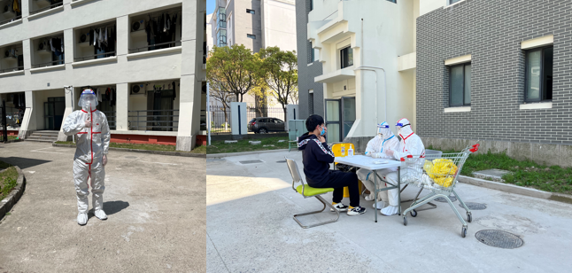 ‘小区化’管理后,我继续参与志愿服务工作,印象最深的是,第一次裹上防护服做“大白”。我坐在医护人员身边,6个小时里负责拆递采样器,密封采样管,从中午到傍晚,防护服里的T恤湿透了、面罩内的发线凝胶了、胶皮手套下的汗毛口堵塞了,这是真正的‘累’的体会。但正是这份‘累’感,让我再次体会到医护人员的辛苦,老师们的不容易。期间,我和王医生有过交流,他说,以现在的情况,坚守好自己的岗位,做好自己的分内之事,不给别人添乱,就是在为社会做贡献。于此,我满屏敬佩,正是这样的精神和态度,才是让我们不畏惧的真实原因。”