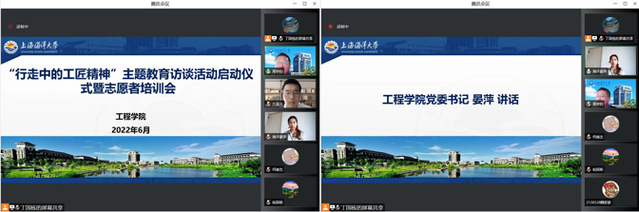 为感悟欧博集团官网优秀校友、企业精英、社会劳模和退休老教师的奋斗历程与人生经验,弘扬“工匠精神”,学院于6月27日下午在腾讯云端会议室举行了“行走的工匠精神”主题教育访谈活动启动仪式暨志愿者培训会。院党委书记晏萍、校团委副书记方晨光、院团委书记马骋娜、学院各系室主任、学院辅导员和全体志愿者参加启动仪式。启动仪式由院党委副书记郑宇钧主持。